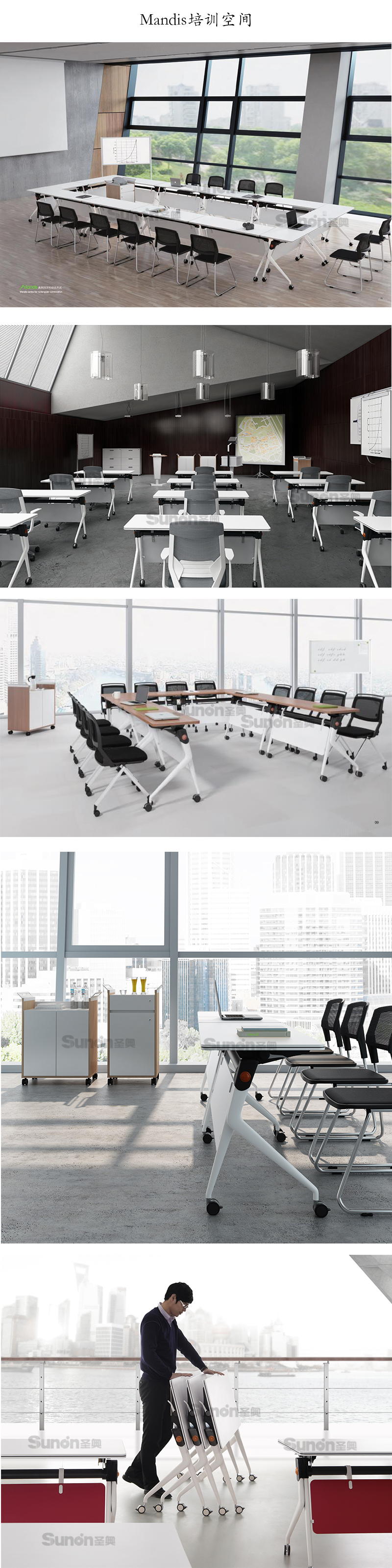 平衡、簡化,將適合生存需求的極造演變和產(chǎn)品的適用需求相結(jié)合,運用到培訕桌主體腳型上,誕生了區(qū)別亍市場同類產(chǎn)品的形態(tài)設(shè)計 ,在細(xì)節(jié)的處理上,為了使Mandis更加具有品質(zhì)感,培訕桌的翻轉(zhuǎn)旋鈕的設(shè)計上,除造型的考慮外,不同材質(zhì)的應(yīng)用,大膽借鑒常使用在消費類電子產(chǎn)品設(shè)計中的材質(zhì)感,成為外觀設(shè)計的點睛之筆。